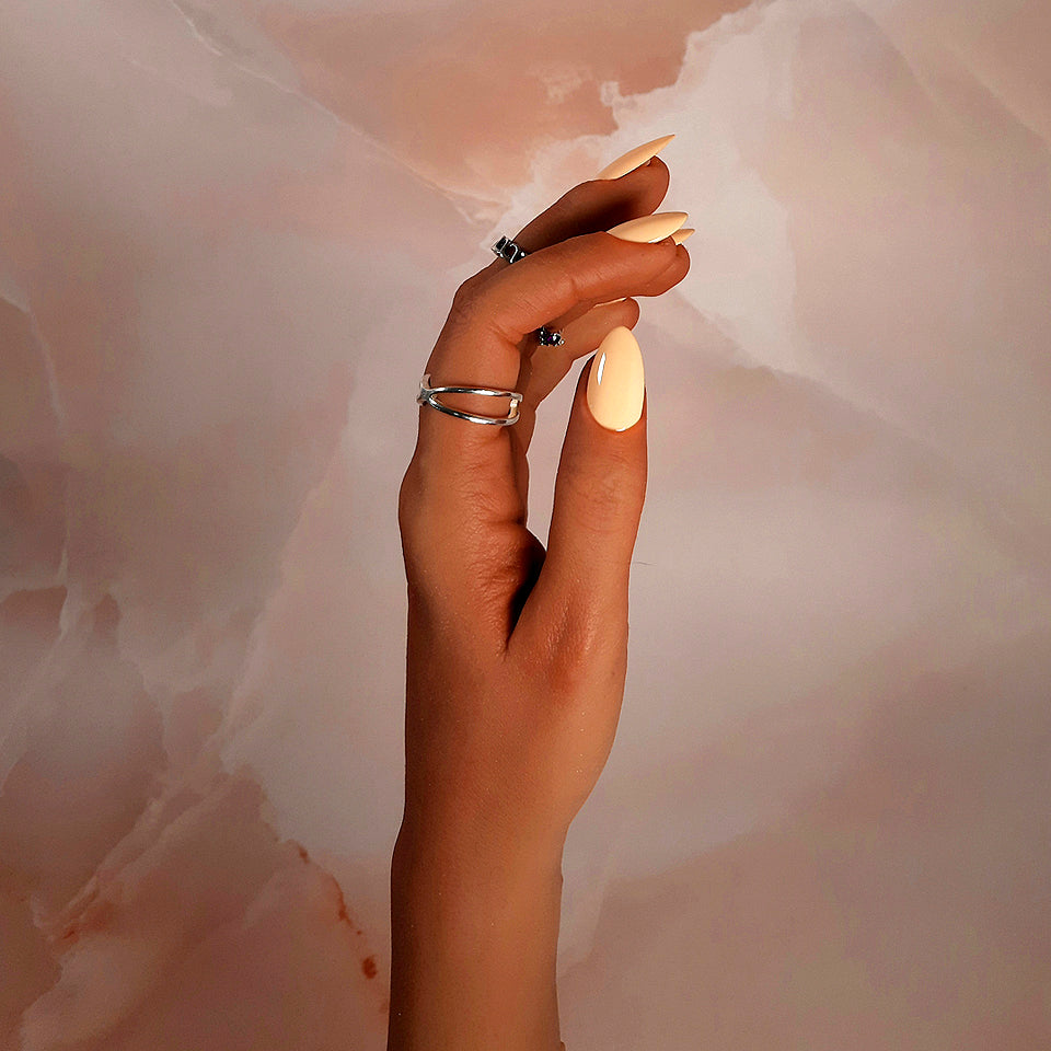 A lovely creamy pastel apricot gel, finished with a glossy top coat.