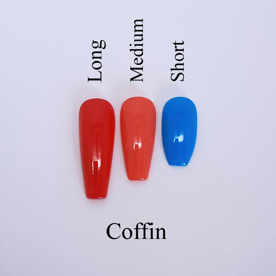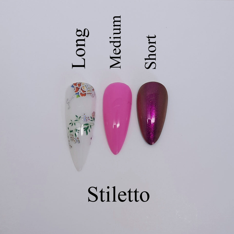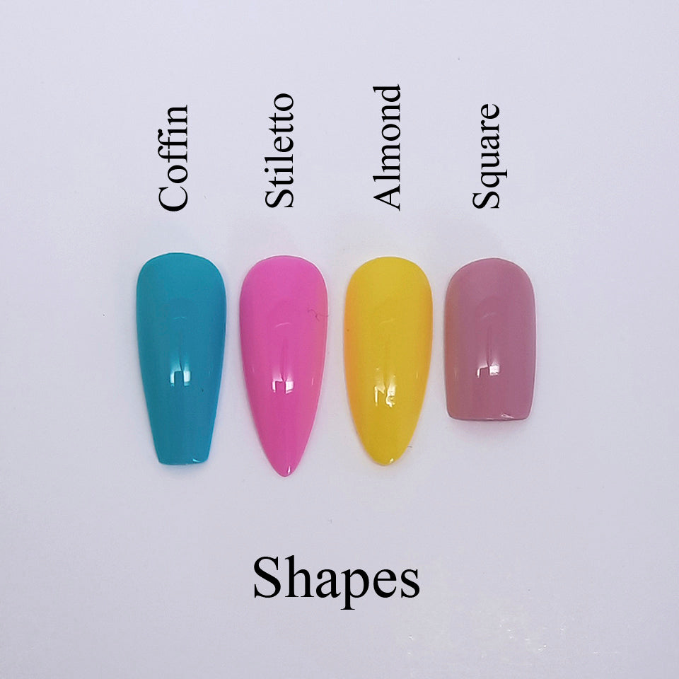 Our nail sizing kits are the most accurate way to size your nails to get a perfect fit. Simply try a blank tip on each of your nails and write the tip number in the box provided. We recommend buying a sizing kit for each shape and length you are interested in, to be sure they fit and suit your nail bed.