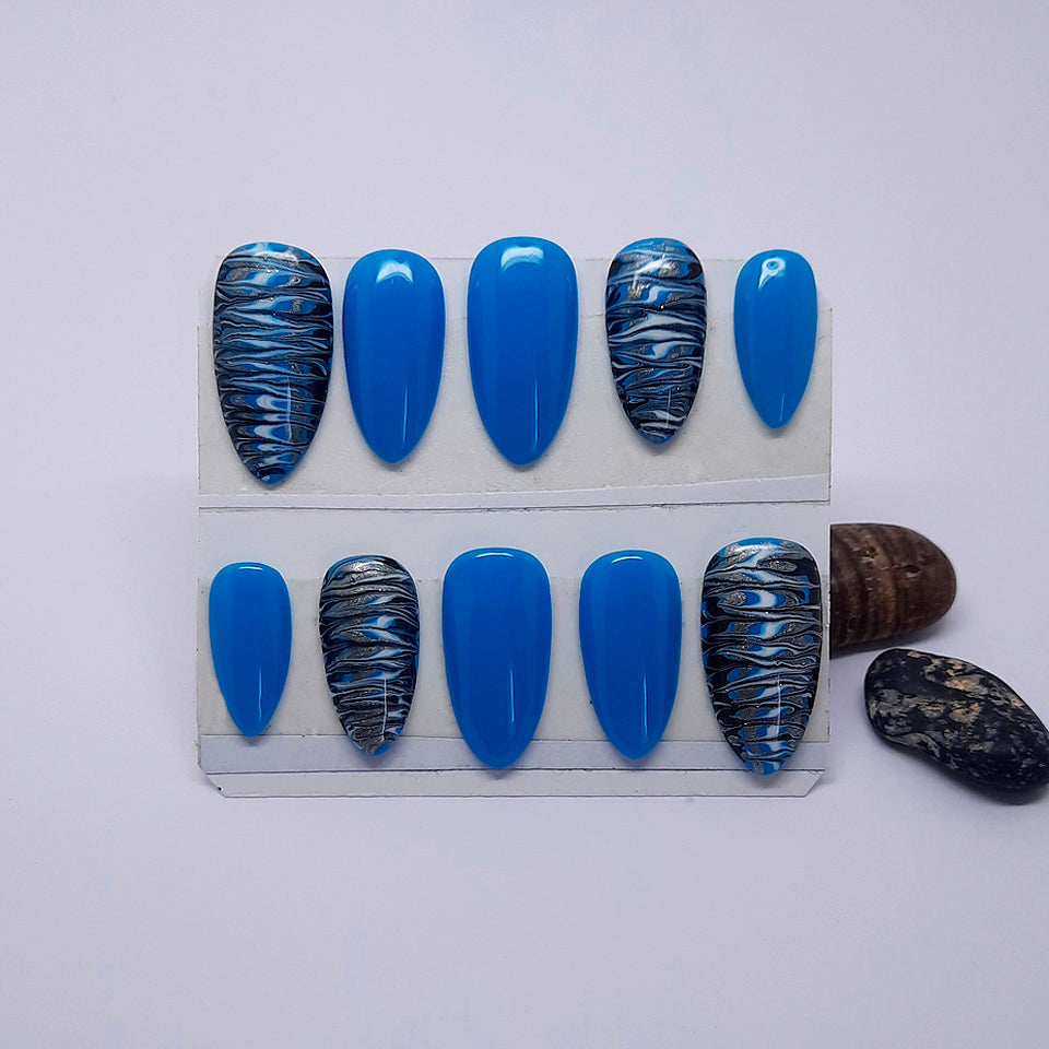 A gorgeous blue set with paint drag detailing, finished with a glossy top coat.